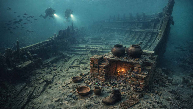 जहाज के भीतर ईंटों से बनी एक रसोई भी मिली है, जिसमें करीब 200 ईंटों और टाइलों का इस्तेमाल हुआ था। यहां से खाना पकाने के बर्तन, मिट्टी के कटोरे और भोजन के अवशेष मिले हैं। इसके अलावा जूते, कंघी, माला के मनके और रंगीन लकड़ी के बर्तन जैसी निजी वस्तुएं भी मिली हैं, जो उस समय के नाविकों की रोजमर्रा की जिंदगी को दर्शाती हैं।