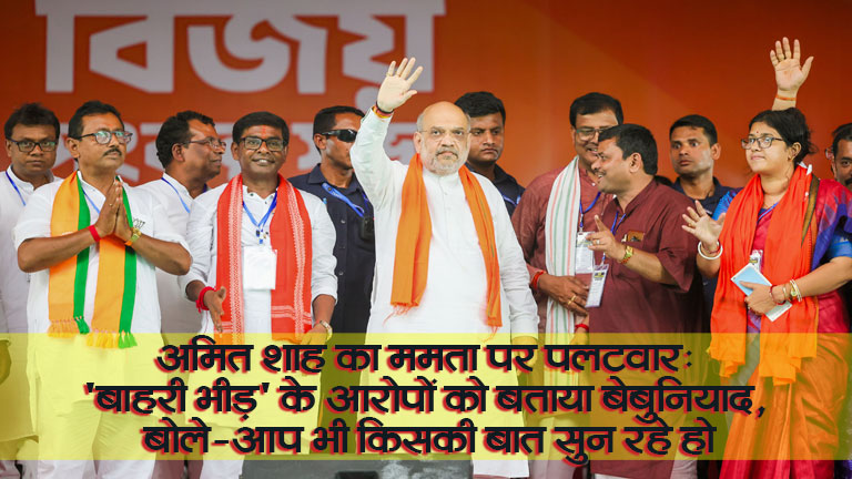 पश्चिम बंगाल विधानसभा चुनाव के दूसरे चरण के लिए मतदान से पहले राजनीतिक पारा अपने चरम पर पहुंच गया है। सोमवार को चुनाव प्रचार का शोर थमने से ठीक पहले केंद्रीय गृहमंत्री अमित शाह ने भाजपा प्रत्याशियों के पक्ष में बेहाला पश्चिम में एक विशाल रोड शो किया। इस दौरान उन्होंने पश्चिम बंगाल की मुख्यमंत्री ममता बनर्जी द्वारा भाजपा पर लगाए गए उन आरोपों को सिरे से खारिज कर दिया, जिसमें कहा गया था कि भाजपा पैसे देकर बाहरी राज्यों से भीड़ जुटा रही है।