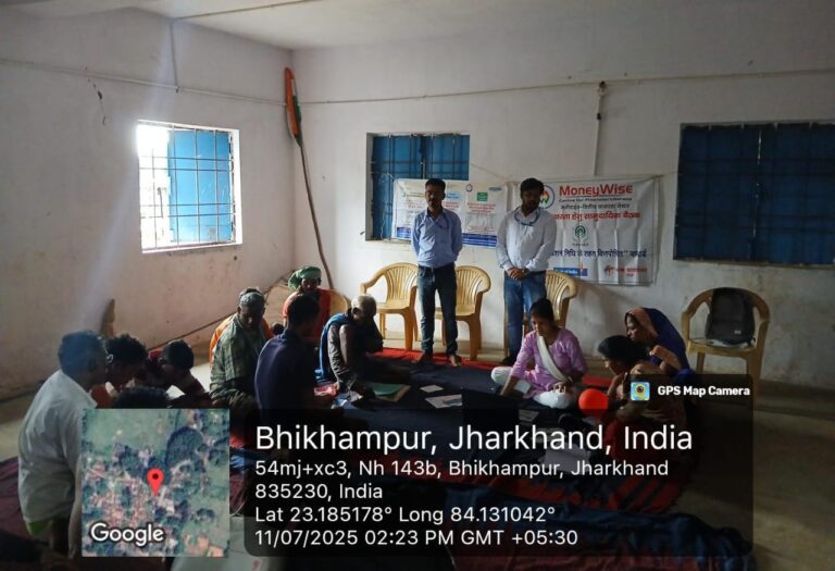 साथ ही मौके पर नया जन धन खाता 03, सुरक्षा बीमा 03, जीवन ज्योति बीमा 06, अटल पेंशन 04 और KCC आवेदन 04 हुआ. इसके अलावा साख फाउंडेशन के ट्रेनर विवेक कुमार केशरी द्वारा बैंक से संबंधित अनेक जानकारी दी और बताया गया कि जिलेभर में वित्तीय साक्षरता कार्यक्रम प्रत्येक ग्राम और पंचायत स्तर पर चलाया जा रहा है, मौके पर बैंक ऑफ इंडिया की टीम, साख फाउंडेशन के ट्रेनर विवेक कुमार, बैंक बीसी और JSLPS बैंक सखी सहित ग्रामीण मौजूद थे