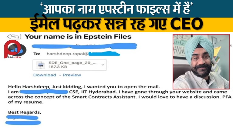 New Delhi: आईआईटी हैदराबाद के एक छात्र की सोशल मीडिया पर इन दिनों खूब चर्चा हो रही है, लेकिन वजह उसकी काबिलियत नहीं बल्कि एक ईमेल है। ‘लेगिट एआई’ के फाउंडर और सीईओ हर्षदीप रापाल को हाल ही में एक छात्र का ईमेल मिला, जिसकी सब्जेक्ट लाइन पढ़कर वे सन्न रह गए। ईमेल पर लिखा था— “आपका नाम एपस्टीन फाइलों में है।” चूंकि एपस्टीन फाइल्स दुनिया का सबसे बदनाम सेक्स स्कैंडल है, इसलिए रापाल ने घबराहट में तुरंत मेल खोला।