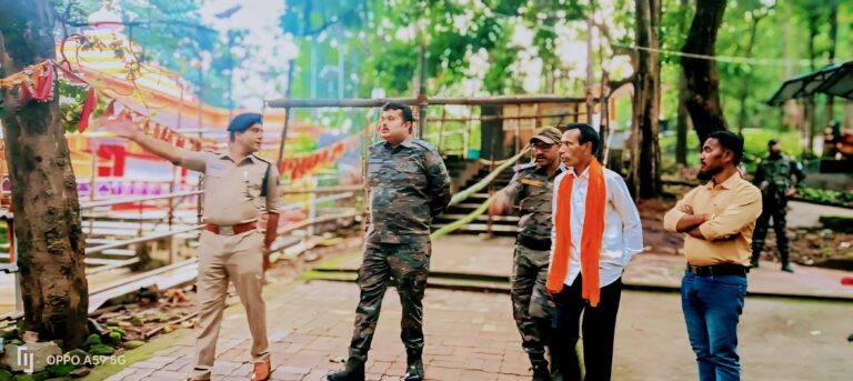 सावन मास की शुरुआत को लेकर डुमरी प्रखंड स्थित प्रसिद्ध धार्मिक स्थल बाबा टांगीनाथ धाम में शनिवार को गुमला एसपी तथा एसडीपीओ समेत प्रशासनिक अधिकारियों ने पहुंचकर विधि-व्यवस्था का निरीक्षण किया। इस दौरान Si मनोज कुमार, टांगीनाथ धाम विकास समिति के सदस्य और स्थानीय लोग भी उपस्थित रहे।