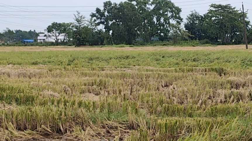 बहरागोड़ा और बरसोल क्षेत्र के किसानों के लिए यह बारिश किसी बुरे सपने से कम नहीं रही। करीब 85.2 मिमी दर्ज की गई तेज बारिश और आंधी के कारण गरमा धान की फसल पूरी तरह जमीन पर गिर गई। कृषि विभाग के अनुसार लगभग 50 एकड़ में लगी धान की फसल प्रभावित हुई है, जबकि सब्जियों की खेती को भी व्यापक नुकसान पहुंचा है। कई जगहों पर कटाई के लिए तैयार फसल भी पानी में डूबकर खराब हो गई है।