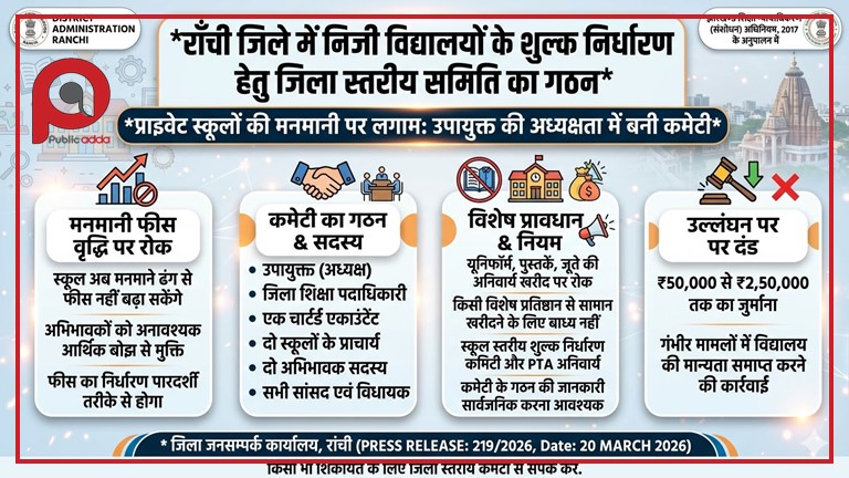 रांची के प्राइवेट स्कूलों में अब 'फीस वाली मनमानी' नहीं चलेगी, उपायुक्त की अध्यक्षता में बनी कमेटी