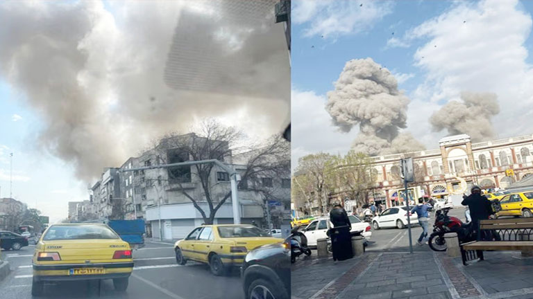 तेहरान में धमाके और आसमान में धुएं का गुबार