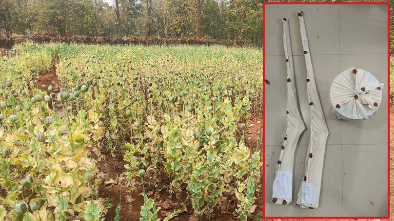 छापेमारी के दौरान मंगल गंझू के घर का दरवाजा खुला मिला, लेकिन घर में कोई सदस्य मौजूद नहीं था। राजपत्रित पदाधिकारी की उपस्थिति में घर की तलाशी लेने पर तीन स्टील ग्लास में रखा करीब 950 ग्राम सूखा अफीम और चार स्टील ग्लास में करीब 580 ग्राम गीला अफीम बरामद किया गया। इसके अलावा दो भरठुवा बंदूक और 35 हजार रुपये नकद भी जब्त किए गए। इसके बाद आसपास के क्षेत्र की तलाशी लेने पर करीब 35 डिसमिल जमीन में अफीम (पोस्ता) की अवैध खेती पाए जाने पर उसे मौके पर ही नष्ट कर दिया गया। पुलिस के अनुसार बरामद अफीम से स्पष्ट है कि उक्त खेती से अफीम निकालकर संग्रह किया गया था। इस मामले में कुडू थाना कांड संख्या 27/26, दिनांक 10 मार्च 2026 के तहत एनडीपीएस एक्ट की धारा 18/18(बी)/22/25 तथा आर्म्स एक्ट की धारा 25(1-बी)ए/35 के अंतर्गत मामला दर्ज कर आगे की कार्रवाई की जा रही है।