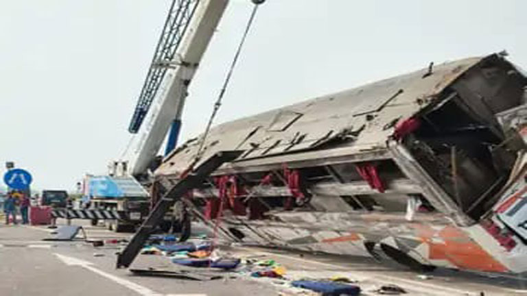 पूर्वांचल एक्सप्रेस-वे के माइल स्टोन 108 पर भीषण हादसा; लुधियाना से आजमगढ़ जा रही लग्जरी बस अनियंत्रित होकर पलटी, डीएम और पुलिस टीम मौके पर।