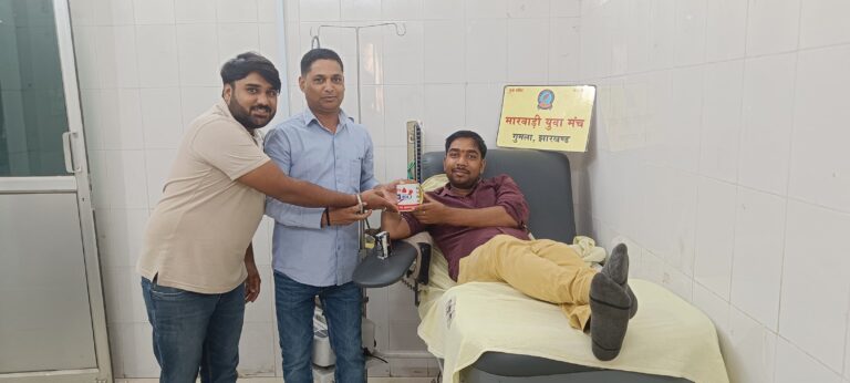 गुमला: मारवाड़ी युवा मंच गुमला के तत्वाधान में आयोजित रक्तदान कार्यक्रम में अखिलेश कुमार ने स्वेच्छा से AB पॉजिटिव रक्त दान किया। इस अवसर पर उन्होंने रक्तदान के महत्व पर प्रकाश डालते हुए कहा कि रक्तदान से कई फायदे होते हैं। वे स्वयं हर तीन महीने पर नियमित रूप से रक्तदान करते आ रहे हैं।रक्तदान प्रभारी रोहित खंडेलवाल ने इस पहल की सराहना करते हुए सभी सामाजिक संस्थाओं से अपील की कि वे रक्तदान शिविरों का आयोजन कर लोगों को रक्तदान के प्रति जागरूक करें। उन्होंने कहा कि रक्त की हर बूंद अनमोल है और यह किसी की जान बचा सकती है।इस मौके पर लैब टेक्नीशियन राकेश सिंह और संगीता कुजूर भी उपस्थित थे, जिन्होंने रक्तदान प्रक्रिया में सहयोग किया। मारवाड़ी युवा मंच गुमला की यह पहल समाज में रक्तदान के प्रति जागरूकता बढ़ाने और जरूरतमंदों तक रक्त पहुंचाने में महत्वपूर्ण योगदान देगी