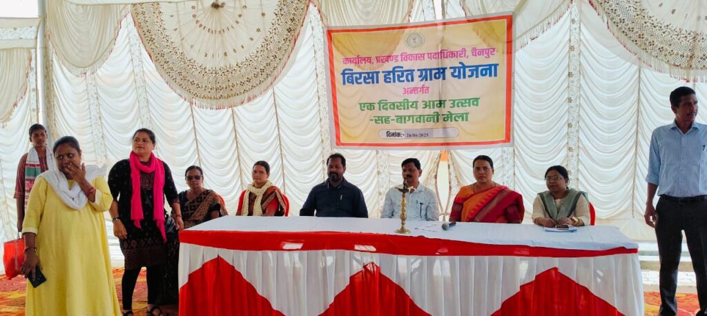 गुमला/चैनपुर– चैनपुर प्रखंड परिसर में आज एक भव्य आम महोत्सव का आयोजन किया गया, जिसका मुख्य उद्देश्य मनरेगा योजना के तहत आम बागवानी को बढ़ावा देना और किसानों को स्वरोजगार के अवसर प्रदान करना था। इस महोत्सव में प्रखंड क्षेत्र के मनरेगा आम बागवानी योजना से जुड़े किसानों ने उत्साहपूर्वक भाग लिया और अपने-अपने बगीचों से लाए गए विभिन्न प्रकार के आमों की शानदार प्रदर्शनी लगाई।कार्यक्रम का विधिवत शुभारम्भ प्रखंड विकास पदाधिकारी यादव बैठा, जिला परिषद सदस्य मेरी लकड़ा, उप प्रमुख प्रमोद खलखो, सुपरवाइजर अंजली वर्मा, बीपीओ कांति कुमारी, बीपीएम बबीता बड़ाईक सहित पंचायत के अन्य जनप्रतिनिधियों द्वारा दीप प्रज्वलन कर किया गया।महोत्सव के दौरान, किसानों ने अपने उगाए गए कई तरह के आमों का प्रदर्शन किया, जिनमें विभिन्न किस्में और आकार शामिल थे। उपस्थित अधिकारियों और जनप्रतिनिधियों ने प्रदर्शनी का भ्रमण किया, किसानों से उनके आमों और बागवानी के तरीकों के बारे में जानकारी ली, और उनके प्रयासों की सराहना की।बीडीओ यादव बैठा ने कहा कि “मनरेगा के तहत आम बागवानी किसानों के लिए वरदान”इस अवसर पर प्रखंड विकास पदाधिकारी यादव बैठा ने किसानों को संबोधित करते हुए कहा कि मनरेगा के तहत आम बागवानी योजना किसानों के लिए एक वरदान साबित हो रही है। उन्होंने जोर दिया कि यह योजना न केवल किसानों को स्थायी आय का स्रोत प्रदान करती है, बल्कि उन्हें आत्मनिर्भर बनने में भी मदद करती है।