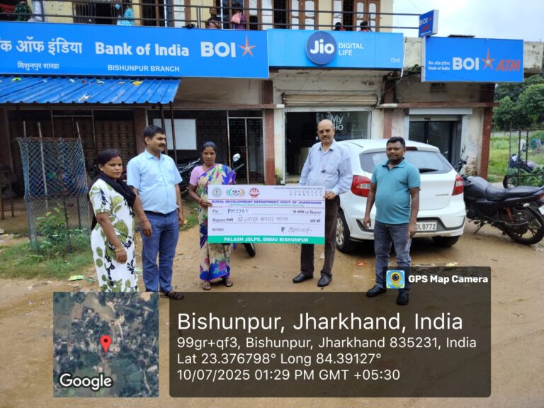 गुमला: ग्राम आमतीपानी, नीचे लोदापाठ निवासी कुशल भगत की असामयिक मृत्यु दो माह पूर्व बीमारी के कारण हो गई थी। वह प्रधानमंत्री जीवन ज्योति बीमा योजना (PMJJBY) के तहत बीमित थे। आज बैंक ऑफ इंडिया शाखा बिशुनपुर के माध्यम से उनके नामिनी विमला भगत को ₹2,00,000 (दो लाख रुपये) की मृत्यु दावा राशि प्रदान की गई।