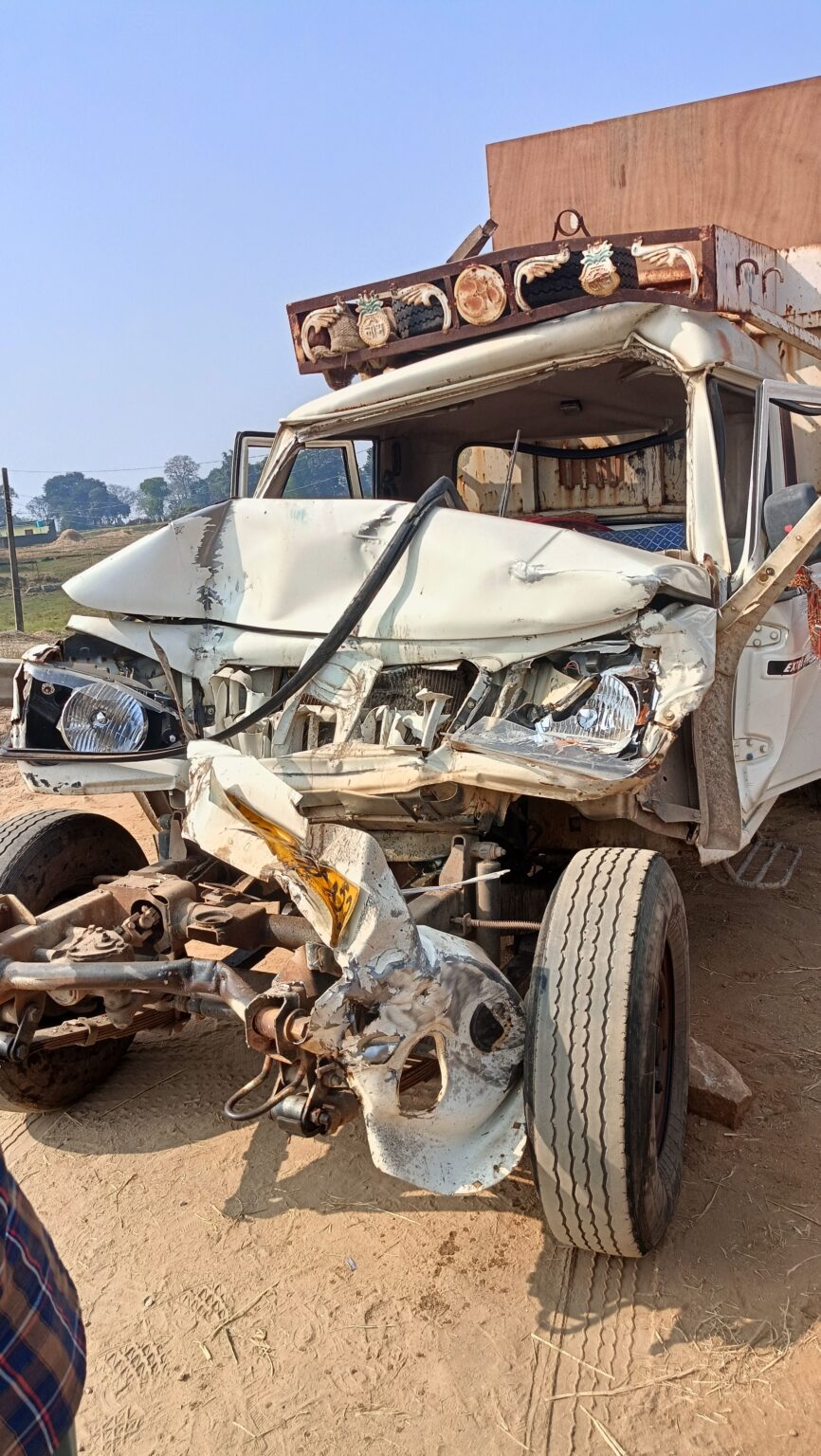 Ranchi: कांके थाना क्षेत्र के रिंग रोड में आज सुबह 9 बजे एक दर्दनाक सड़क हादसा हुआ। जानकारी के अनुसार सरिया लदे एक पिकअप वैन को पीछे से तेज रफ्तार में आ रही दूसरी पिकअप वैन ने जोरदार टक्कर मार दी। टक्कर इतनी भीषण थी कि आगे वाली वाहन में लदा सरिया पिछे बैठे दो लोगों के सिर में घुस गया ग्रामीणों का कहना था की टक्कर इतनी जोरदार थी की वाहन का अगला हिस्सा बुरी तरह क्षतिग्रस्त हो गया और वाहन में सवार दो लोगों की मौके पर ही मौत हो गई।